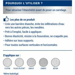- Â RevĂȘtement d’ETANCHEITE souple AVANT CARRELAGE, sans primaire d’accrochage